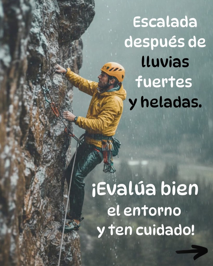 Debido a las intensas lluvias acumuladas desde verano queremos recordar que hay que tener cuidado porque puede haber peligro por desprendimientos. ¡Escala con la cabeza y el casco puesto!