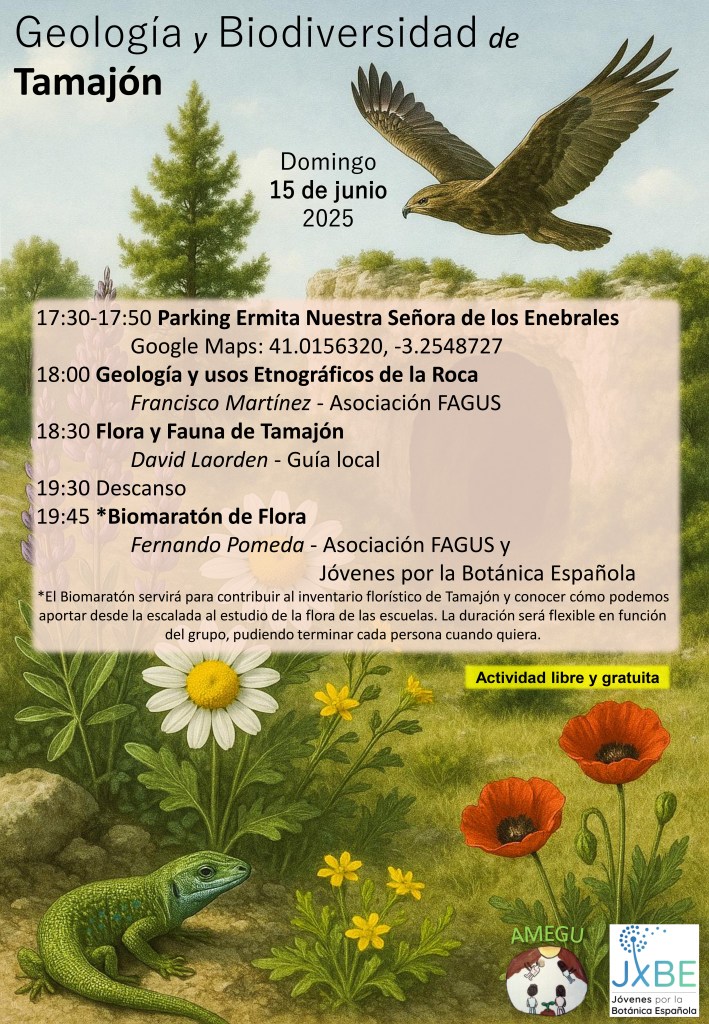 El domingo 15 de junio tuvimos la suerte de poder conocer un poquito mejor la Geología y la Biodiversidad de Tamajón. El origen de la roca que escalamos junto con los usos etnográficos que ha tenido y tiene fueron el inicio de la jornada. Tras continuar conociendo un poco mejor la flora y la fauna asociada a esta roca, pudimos hacer un biomaratón de flora.
